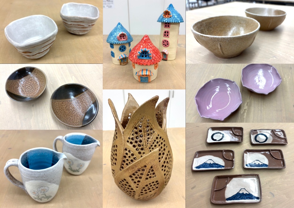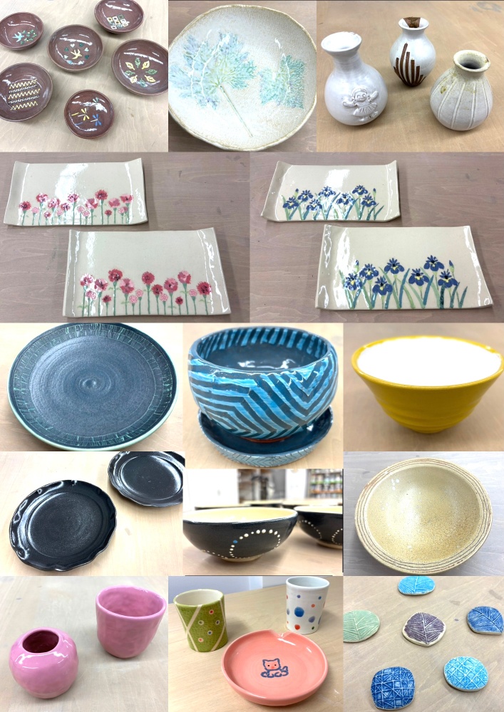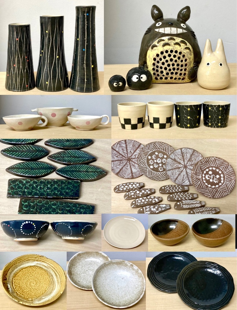料金 | *入会金・5000円(5500円税込)入会金無料キャンペーン中! *プレミアム(フリー)コース 15000円(16500円税込)/月 *スタンダード(月4回)コース 12000円(13200円税込)/月 *ハーフ(月2回)コース 6000円(6600円税込)/月 *校費(教室維持費・事務手数料) 455円(500円税込)/月 *粘土代2kg(焼成費、釉薬込) 2637円(2900円税込) 釉薬/焼成費込みですので作品の大きさも自由です *1日体験 3000円(3300円税込) |